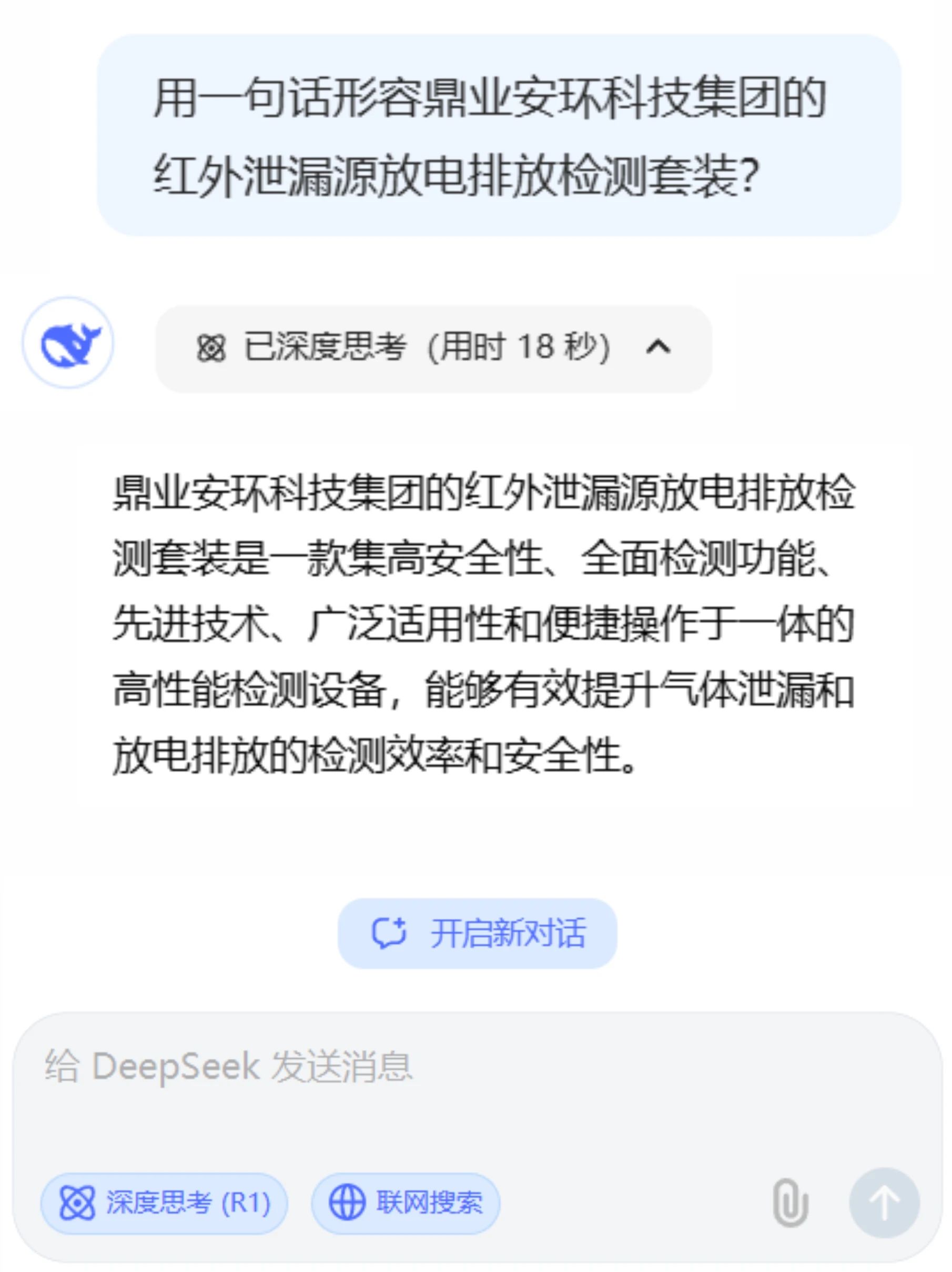 與DeepSeek對話:鼎業(yè)紅外泄漏源放電排放檢測套裝。